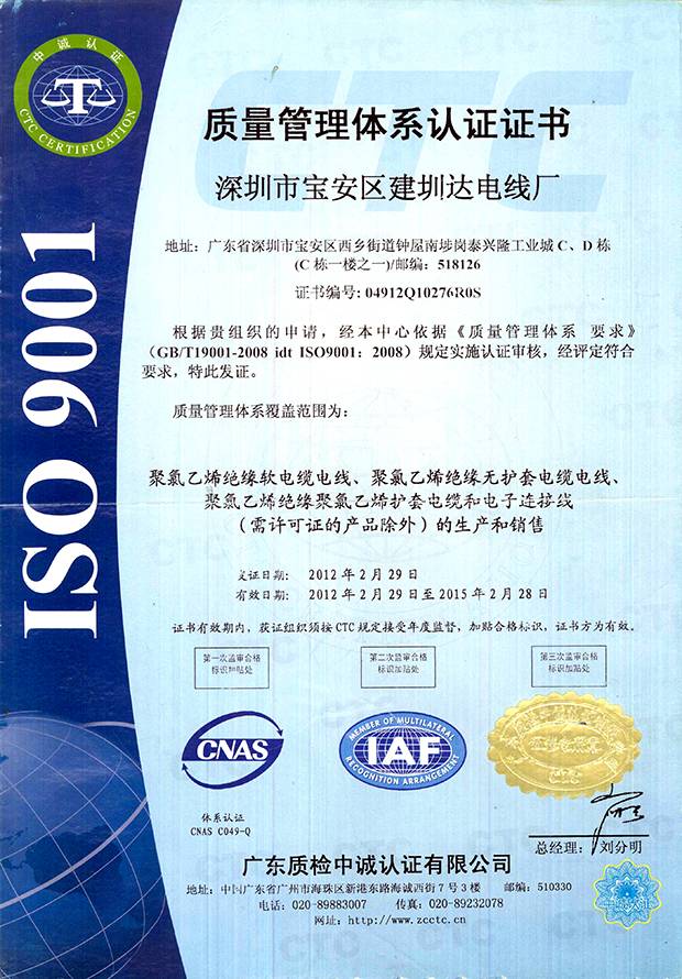 建圳達電纜立足于中國深圳,擁有技術(shù)精湛的隊伍、現(xiàn)代化生產(chǎn)設備、精密的檢測儀器,從原材料、生產(chǎn)、成品嚴格按照國家標準檢測,通過多個認證。
